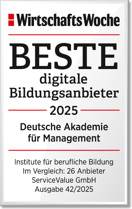 Die Deutsche Akademie für Management wurde mit dem renommierten WirtschaftsWoche-Qualitätssiegel „Beste digitale Bildungsanbieter 2025“ prämiert.